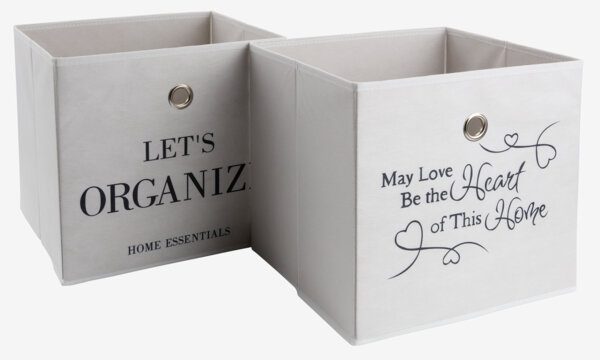 Cesta disponible en varios diseños con frases, de color blanco. Una cesta ligera y espaciosa que se adapta a una amplia variedad de necesidades de almacenaje. Incluye asas con ojales de acero para facilitar su transporte. A32 x L28 x A30 cm
