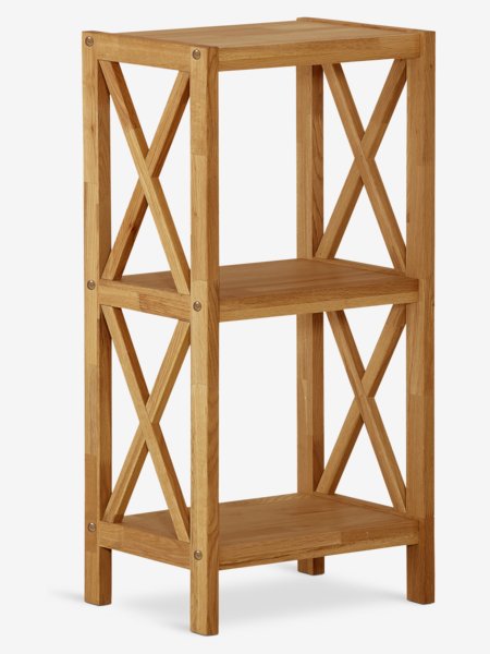 Roble macizo y chapa de roble. 3 estantes finos. A40 x A87 x P30 cm