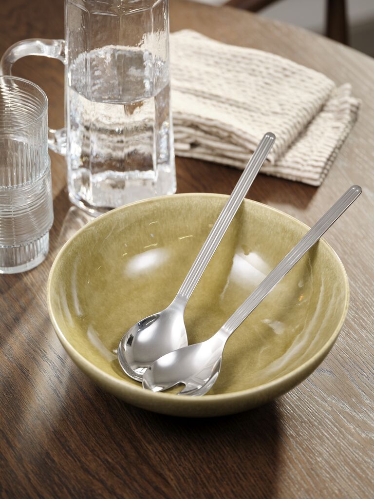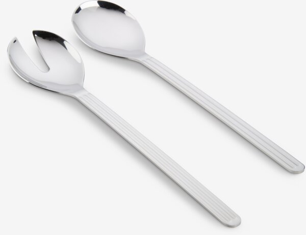 Cubiertos para ensalada en un juego de dos, fabricados en acero inoxidable resistente. Su diseño sencillo es ideal para el uso diario, y estos cubiertos son aptos para lavavajillas, para mayor comodidad. A5 x L26 cm
