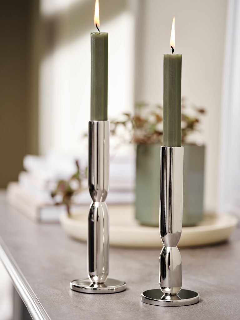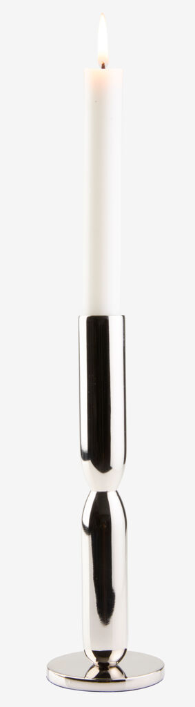 Candelabro con un acabado cromado reflectante. Su forma esbelta y elegante y su base redonda y estable crean una expresión moderna y minimalista. Ø7 x A22 cm