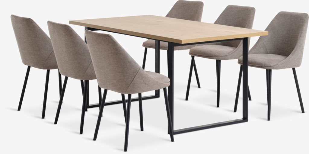 AABENRAA + VELLEVMesa AABENRAA L160 roble cálido +4 sillas VELLEV arena/negro