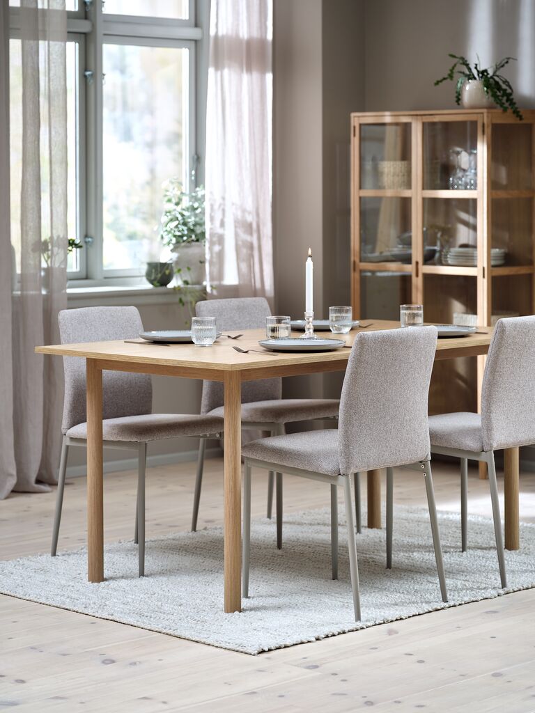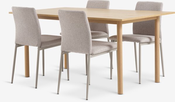 Mesa ALSTED L160 roble natural + 4 sillas BRANDE beis