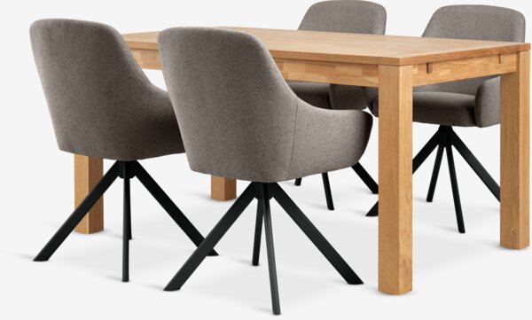 HAGE + ROSTRUPMesa HAGE L150 roble natural + 4 sillas ROSTRUP arena/negro