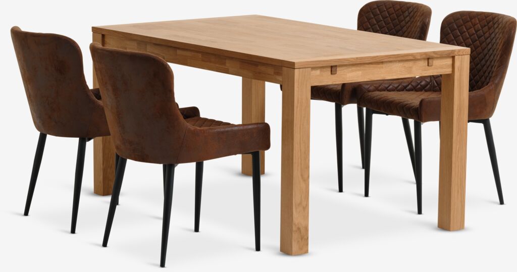 HAGE + PEBRINGEMesa HAGE L150 roble natural+4 sillas PEBRINGE marrón/negro