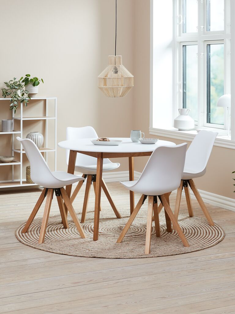 Mesa JEGIND Ø105 blanco + 4 sillas BLOKHUS blanco
