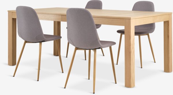 Mesa KORSKRO L200/326 roble natural + 4 sillas JONSTRUP gris