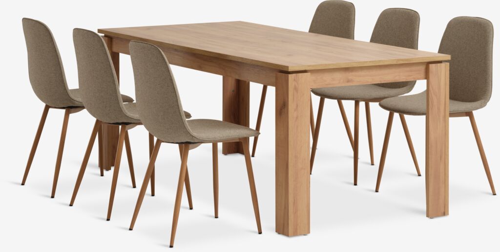 LINTRUP + BISTRUPMesa LINTRUP L190/280 roble salvaje + 4 sillas BISTRUP arena