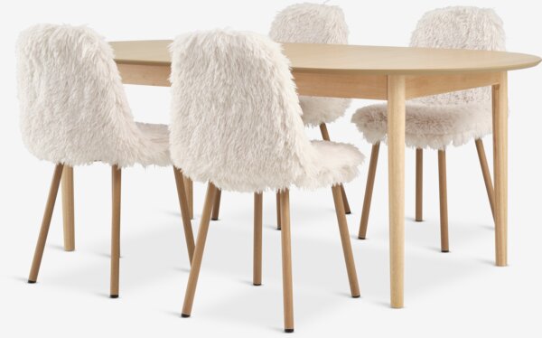 Mesa MARSTRAND L200/280 roble + 4 sillas JONSTRUP felpa