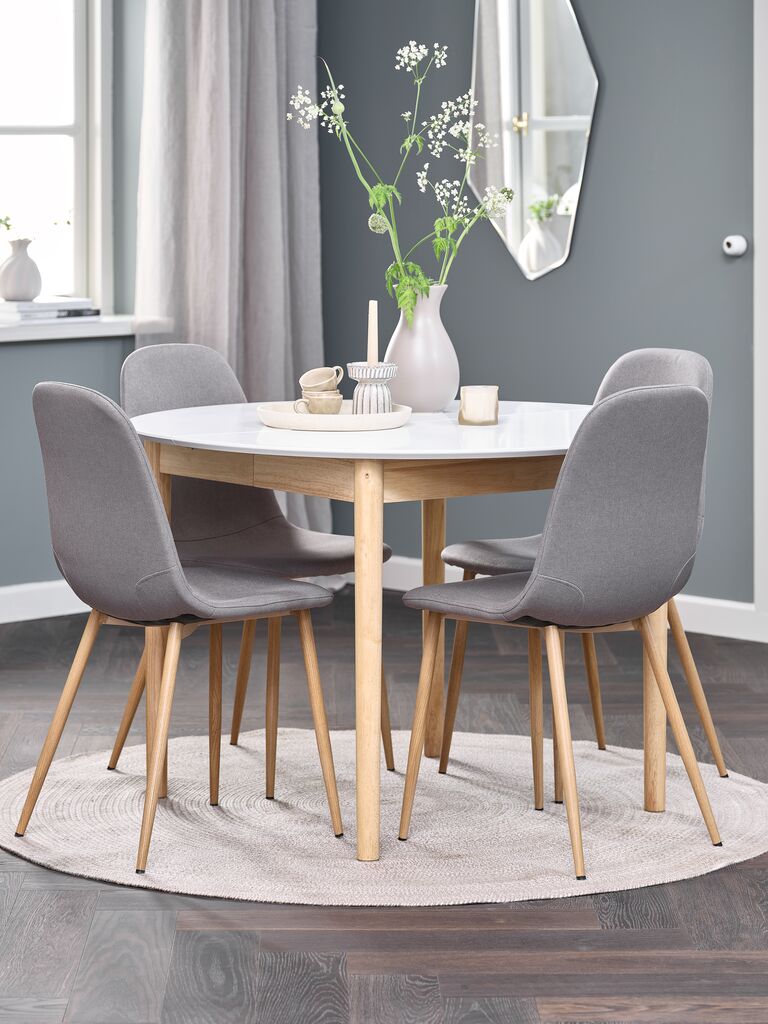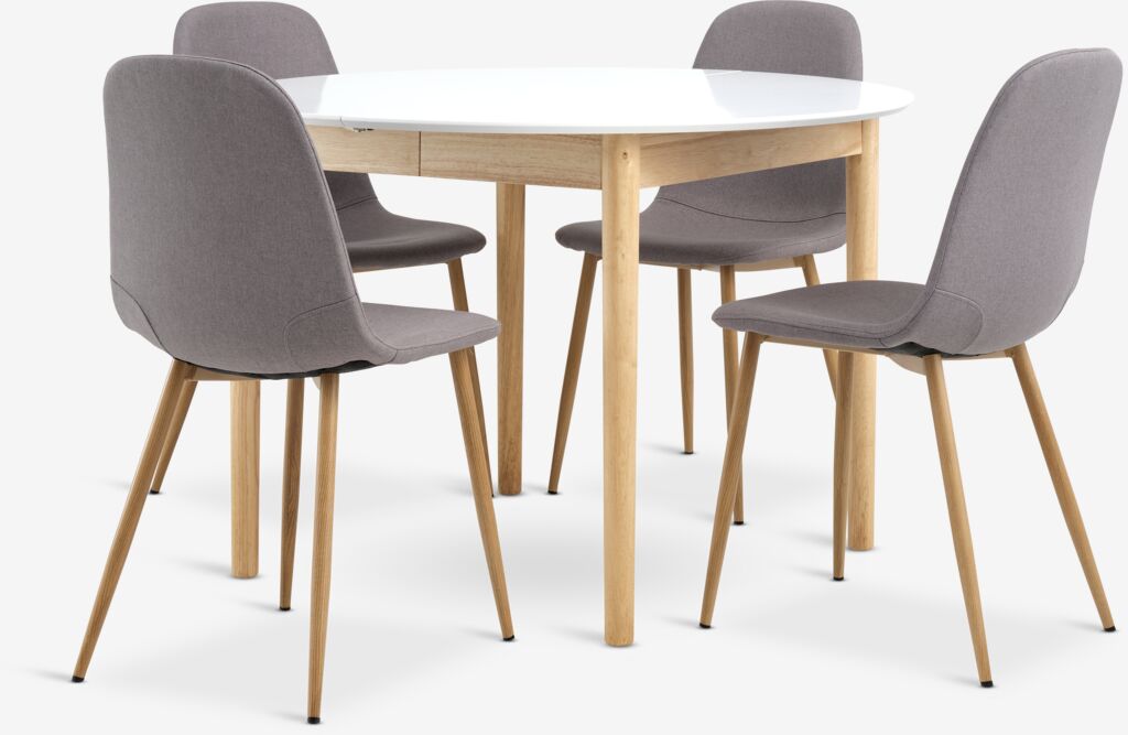 MARSTRAND + JONSTRUPMesa MARSTRAND Ø110 blanco + 4 sillas JONSTRUP gris