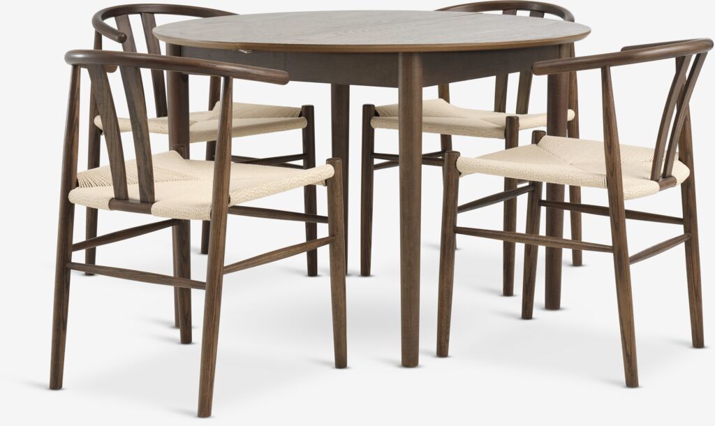 MARSTRAND + GUDERUPMesa MARSTRAND Ø110 roble oscuro + 4 GUDERUP roble oscuro