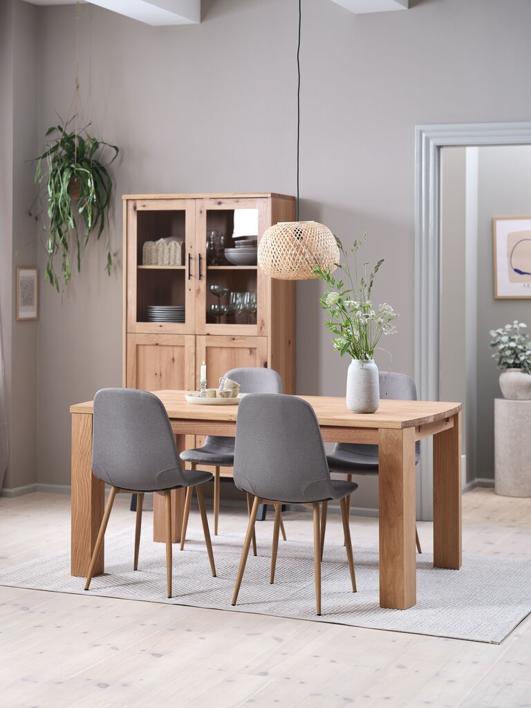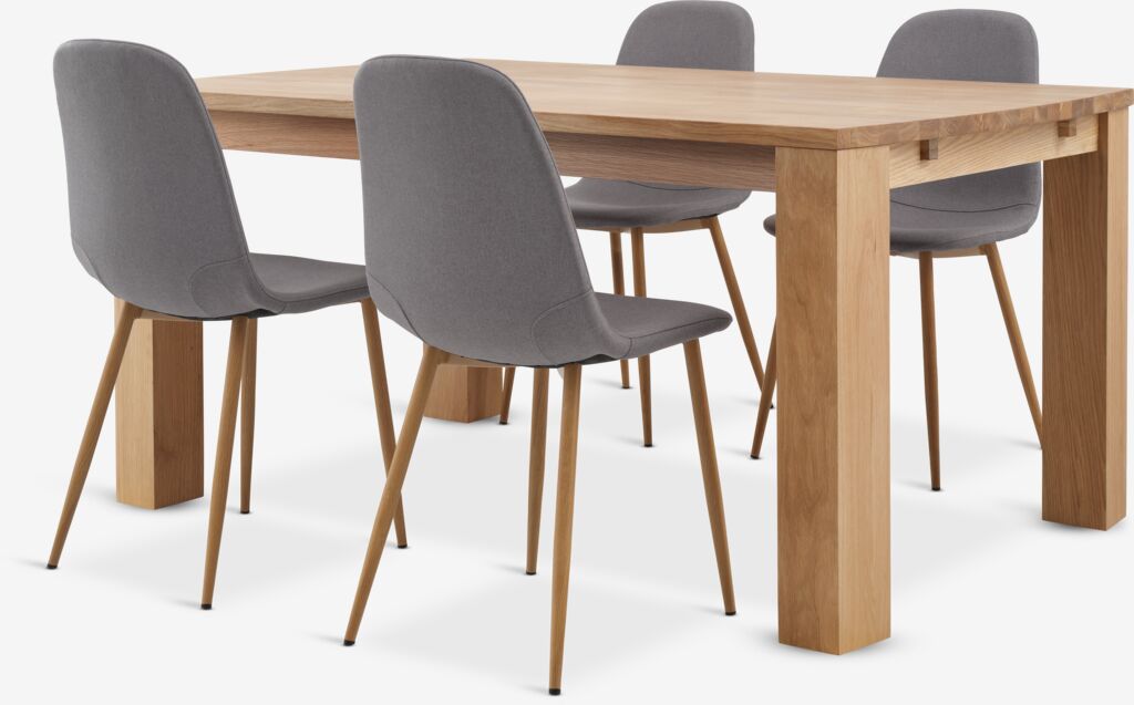 Mesa OLDE L160 roble natural + 4 sillas JONSTRUP gris