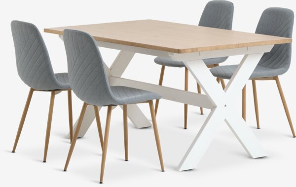 VISLINGE + JONSTRUPMesa VISLINGE L150 natural + 4 sillas JONSTRUP azul claro