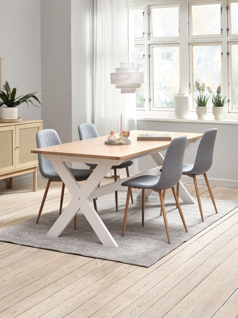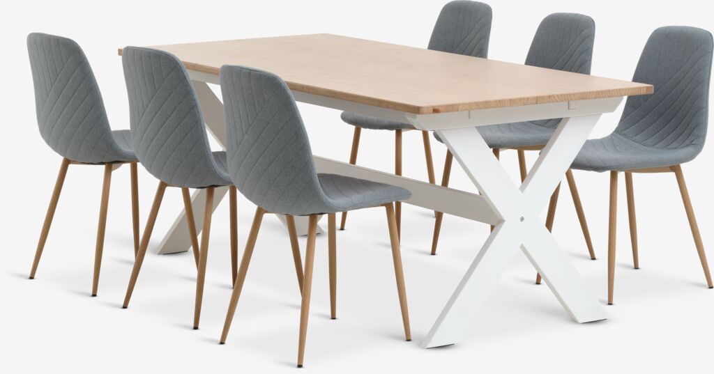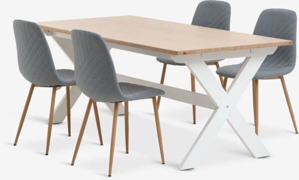 VISLINGE + JONSTRUPMesa VISLINGE L190 natural + 4 sillas JONSTRUP azul claro