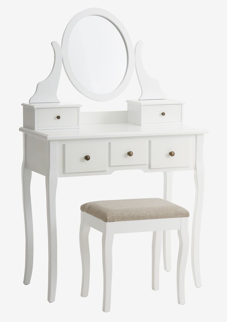 MALLINGTocador + taburete MALLING con espejo blanco/beis