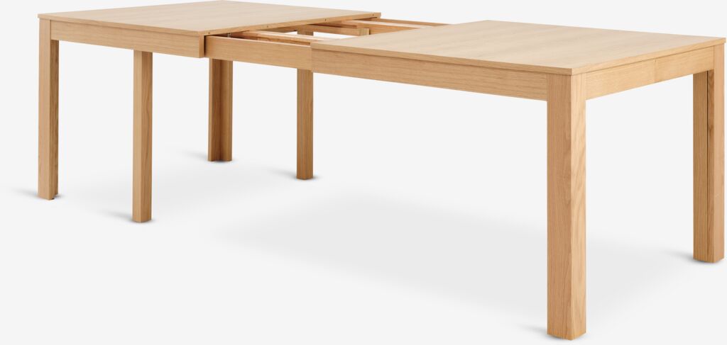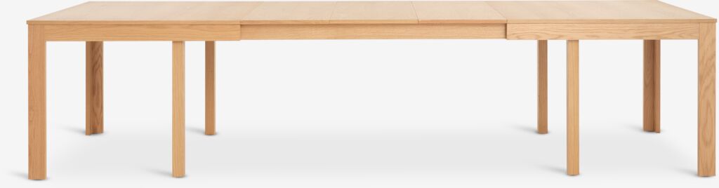 Mesa de comedor extensible con mecanismo de extracción. Mesa fabricada de roble macizo y chapa de roble. Madera barnizada para una mayor durabilidad. Puedes añadir hasta 5 extensiones para alargar la mesa hasta 436 cm, para grandes reuniones o fiestas. 3 extensiones incluidas, que se pueden guardar bajo el tablero. Las extensiones adicionales se venden por separado. Cuando la mesa está extendida, el número de patas se duplica de 4 a 8. A100 x L200 x A75 cm