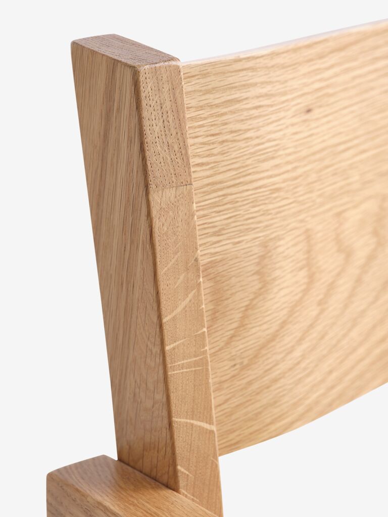Stolen har en tilltalande design med sina rena linjer och naturliga ekfinish. Formmässigt ger stolen ett intryck av att vilja vara en designklassiker men till lägre pris. Tyvärr motsvarar inte kvaliteten förväntningarna för en produkt i ROYAL OAK-serien. Flera av stolarna uppvisar synliga märken från tillverkningsmaskiner. Avfasningen och slipningen av kanter är ojämn och inkonsekvent mellan olika stolar. Särskilt problematiskt är skadorna där olika delar ska passa ihop, vilket tyder på bristande noggrannhet. Mitt intryck är att produktionshastighet har prioriterats framför kvalitetskontroll. För en möbelserie som marknadsförs med "hög kvalitet" och "äkta ek" är detta en besvikelse. Designen håller måttet, men utförandet gör tyvärr inte det.