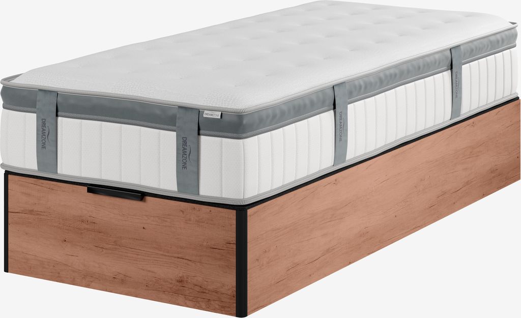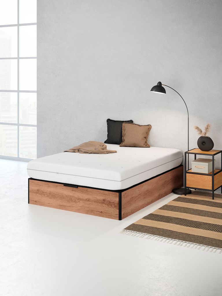Canapé 90x190 cm con espacio de almacenaje y elevador hidráulico. Para colchones de espuma y de muelles. Colchón y patas no incluidos.