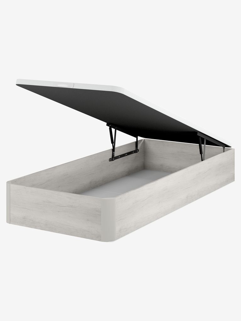 Canapé 90x200 cm con espacio de almacenaje y elevador hidráulico. Para colchones de muelles y de espuma. Colchón y patas no incluidos.