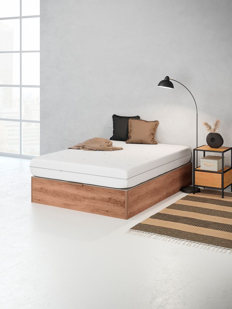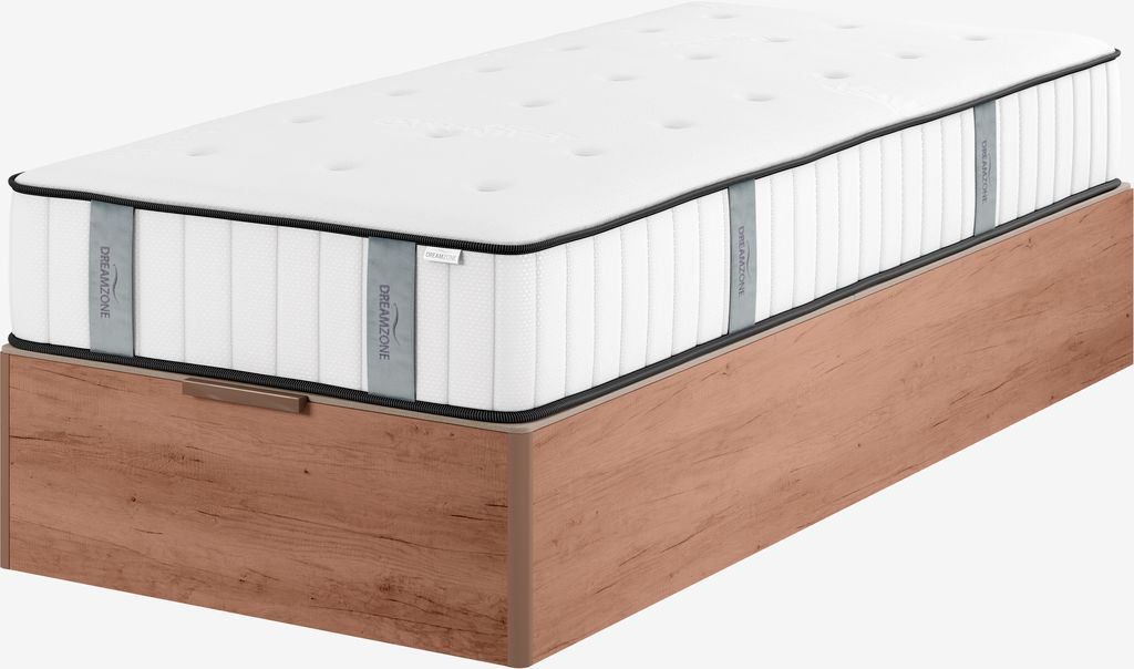 Canapé 90x200 cm con espacio de almacenaje y elevador hidráulico. Para colchones de espuma y de muelles. Colchón y patas no incluidos.