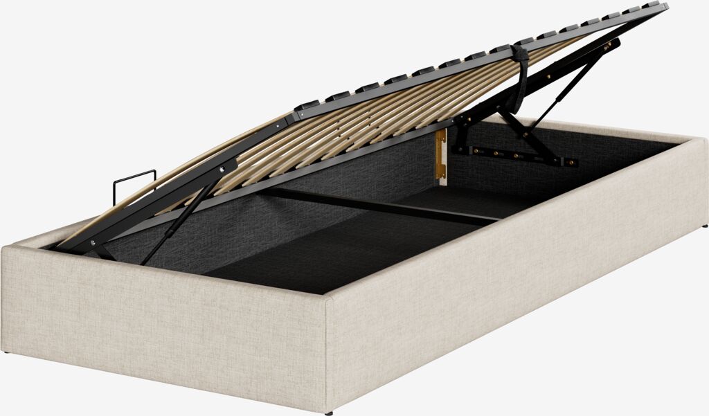 Canapé 90x200 cm con espacio de almacenaje y elevador hidráulico. Apto para colchones de muelles y de espuma. No incluye patas ni colchón.
