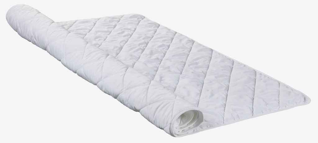Protector de colchón lavable 85x200 cm, con un acolchado ligero de fibra de poliéster siliconada (100% reciclada). Funda de 100% microfibra de poliéster suave (100% reciclada). Tiras elásticas en las esquinas.