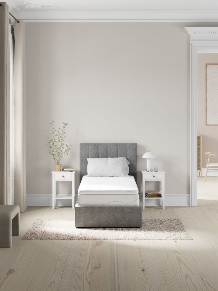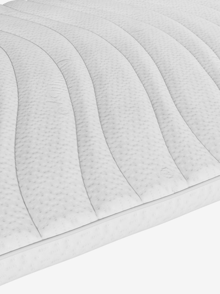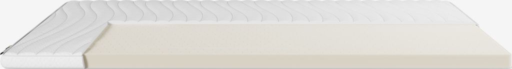 Topper 90x200 cm, de 6 cm de grosor, con núcleo de látex transpirable, que disipa el calor excesivo de forma efectiva. Funda lavable de 100% poliéster (65% reciclado) con un acolchado grueso y suave. La funda se ha tratado con el biocida GREENFIRST®.