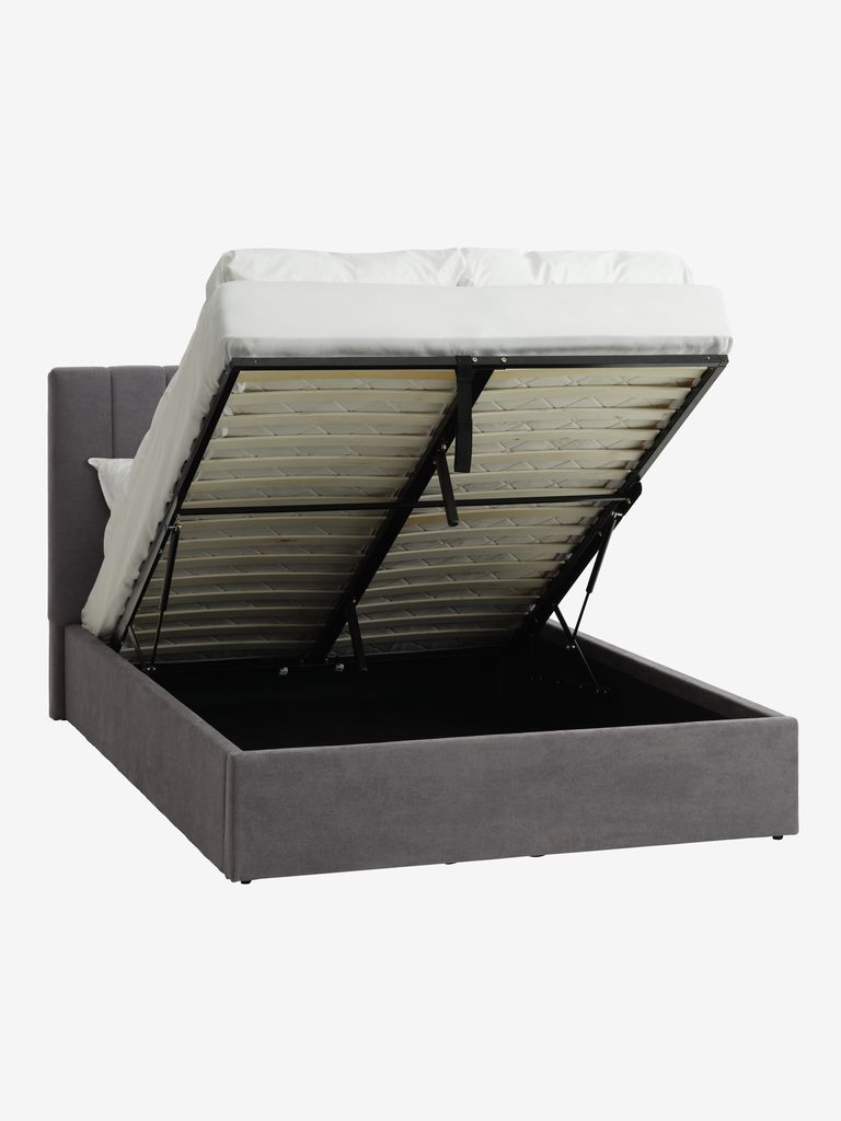 HASLEVEstructura cama HASLEV 150x190 almacenaje tela gris oscuro