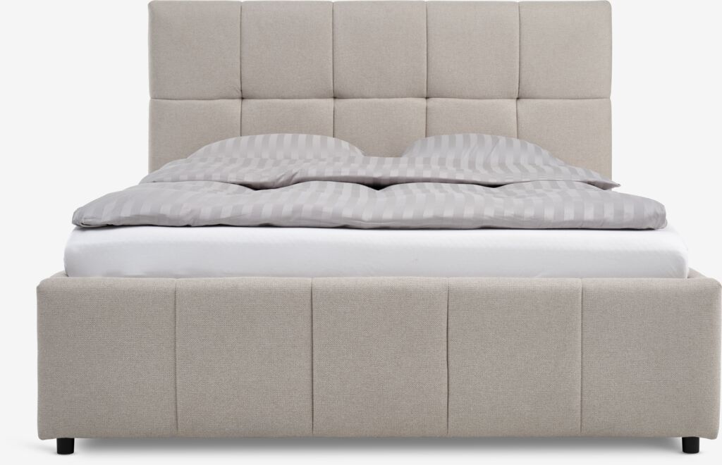 Estructura de cama VEMMELEV con almacenaje 150x190 tela beis