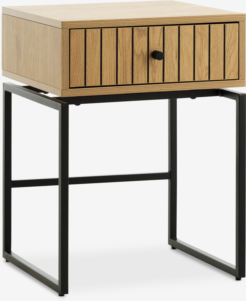 HEMDRUPMesita de noche HEMDRUP 1 cajón color roble cálido/negro