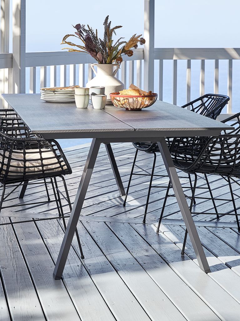 Vi købte bordet fordi det er virkelig pænt, men det er slet ikke egnet til at stå ude. Står der glas på i solskinsvejr, smelter der små huller ned i bordet fra solskæret i glasset på få minutter. Det kommer pletter på bordet af næsten ingenting og det er svært at vaske rent. Så allerede meget brugt ud på få uger. Det er så ærgerligt, men vi har helt klart fortrudt købet.