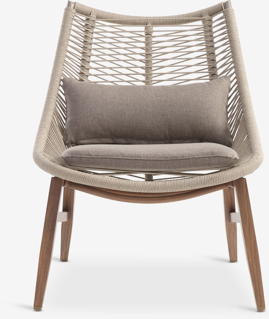 Sillón de exterior de aluminio y cuerda de poliéster. Incluye cojines de lujo con funda resistente y tejida en estructura. A70 x A85 x P80 cm