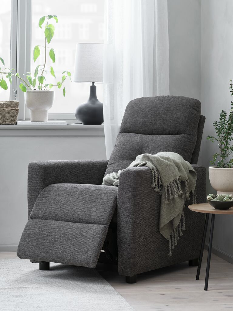 VEJLBYSillón reclinable VEJLBY tela gris oscuro
